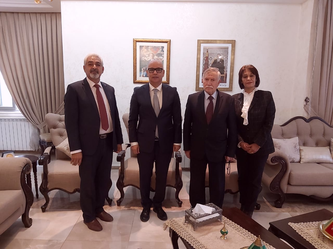 بدوره شكر سعادة السفير محمد الحمزاوي التميمي على زيارته للسفارة وتهنئة المملكة المغربية بعيد استقلالها، مؤكدا على "موقف المغرب الثابت تجاه القضية الفلسطينية وحق الشعب الفلسطيني في تقرير مصيره وإقامة دولته المستقلة وعاصمتها القدس الشريف".