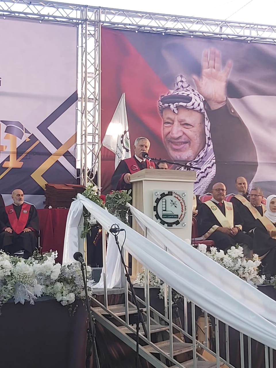 واضاف التميمي، هو يشغل منصب رئيس رابطة الخريجين الجامعيين و رئيس مجلس أمناء الجامعة، في كلمته خلال تخريج الفوج ال 41 لطلبة بكالوريوس و الماجستير في جامعة بوليتكنك فلسطين _الخليل: " لقد فشلت محاولات الاحتلال المستمرة بمحاصرة العملية التعليمية في فلسطين، وخاصة محاولة حصر التخصصات، حين انطلقت هذه الجامعة، بأربع تخصصات للدبلوم فقط و أن شعبنا استطاع من خلال إصراره على التعليم ان يحول هذه الجامعة لواحدة من أهم الجامعات الفلسطينية التي تدرس الدبلوم و البكالوريوس و الماجستير و الدكتوراة.