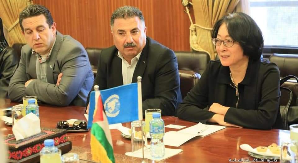 استقبل السيد احمد التميمي عضو اللجنة التنفيذية لمنظمة التحرير الفلسطينية، رئيس دائرة حقوق الإنسان والمجتمع المدني في منظمة التحرير الفلسطينية، السيدة "مامي ميزوتوري" الممثل الخاص للأمين العام للأمم المتحدة/ رئيس مكتب الأمم المتحدة للحد من مخاطر الكوارث والسيد "سوجيت موهانتي" رئيس المكتب الاقليمي للدول العربية للحد من مخاطر الكوارث في الأمم المتحدة، والسيدة رانيا حماد مسؤول العلاقات العامة في مكتب الأمم المتحدة ومسؤولة ملف "جعل المدن قادرة على الصمود ". وذلك في مكتبه بمقر المنظمة في رام الله، نهاية الأسبوع الماضي.