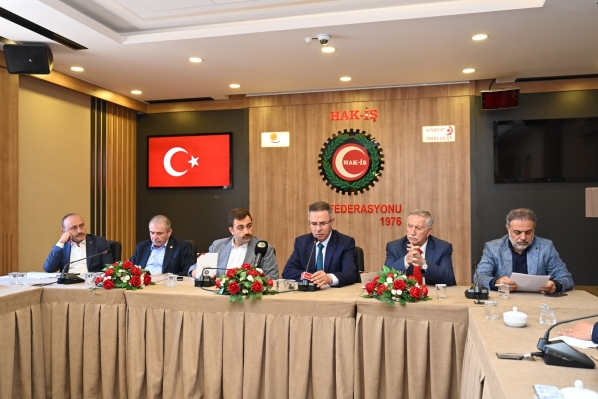 من جانبه ، قال السفير الفلسطيني الدكتور فائد مصطفى ان علاقاتنا مهمة للغاية مع اتحاد حقي العمل ، و شكلنا شراكة كاملة و نقدم احترامنا وحبنا إلى محمود ارسلان رئيس الاتحاد ، وإلى سعادة حسين تانريفيردي ، رئيس لجنة فلسطين وإلى جميع النقابيين وقمنا بأنشطة معهم في العديد من المدن من أجل فلسطين والقدس والمسجد الأقصى ".