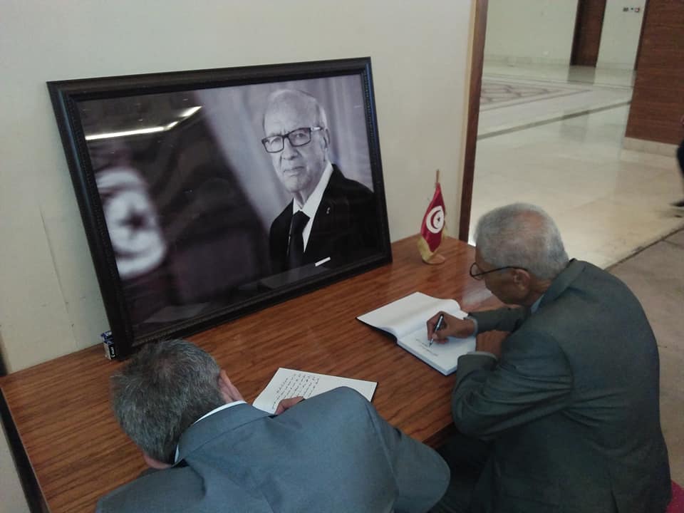قدم وفد من دائرة حقوق الانسان والمحتمع المدني، في منظمة التحرير الفلسطينية، واجب العزاء بالرئيس التونسي الراحل الباجي قايد السبسي، في بيت العزاء الذي اقامته السفارة التونسية...
